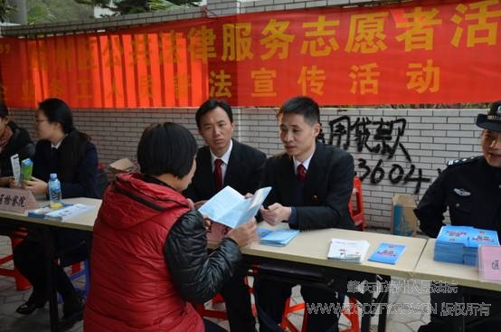 “我们楼盘开发商的施工材料不行,导致我们的房子出现质量问题,找投诉物管,物管说检测过房子没问题,请问法官,我们要怎么维权……”近日,我院与区司法局、区检察院、区公安分局等单位,开展了“法治暖流在行动”端州区公共法律服务志愿者活动暨端州区2015年企业务工人员普法宣传活动,在料峭春寒中为广大群众带来一股“法治暖流”。活动现场,群众纷纷前来向法官咨询法律问题。