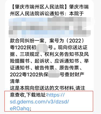如果收到【肇庆市端州区人民法院】这样的短信,