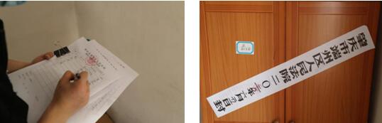 (图为工作人员对屋内物品进行登记、查封)