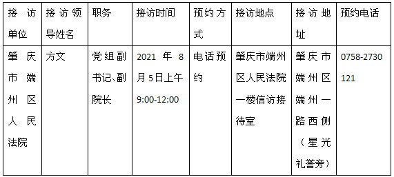 根据工作安排,现定于2021年8月5日开展我院院领导定期接待群众来访活动,具体通告如下: