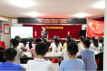 为进一步加强《民法典》宣传与普及工作,引导青少年学习了解《民法典》,7月30日,端州法院覃丽珍法官来到城西街道芙蓉社区新文明实践站开展“民法典与生活同行”宣讲活动。现场来自肇庆市第七小学的近30名师生参加了活动。