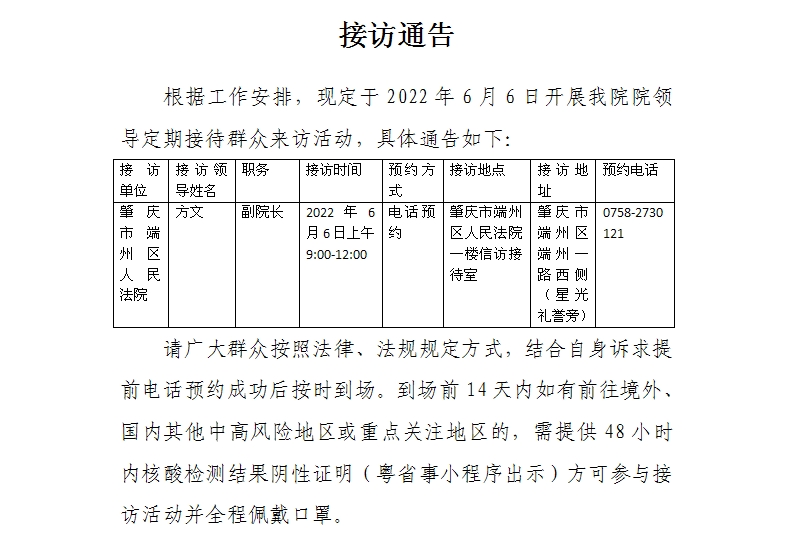 接访通告(接访时间:2022年06月06日)