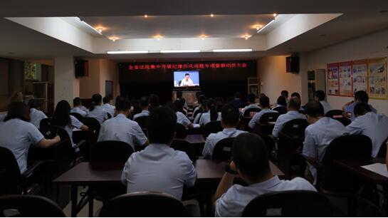 会议由省法院党组副书记、常务副院长霍敏主持,省纪委派驻省法院纪检组长、省法院党组成员梁小岸对专项督察活动作了工作部署。省高级人民法院党组书记、院长龚稼立在会上强调,要坚持以问题为导向,下决心贯彻“五个严禁”和防止过问案件的“两个规定”、“两个办法”、整治“六难三案”,进一步强化制度刚性、细化纪律惩戒制度,加强管理和监督,将纪律作风建设贯穿队伍建设和深化改革始终,以严明纪律过硬作风保障公正司法、维护公平正义,让人民群众有更大的获得感。