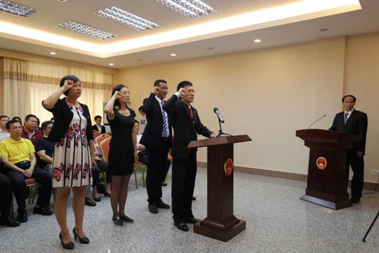 (图为任职会议现场,左3为区人大常委会主任梁祥达同志,左1为区法院副院长黄愿坚同志)