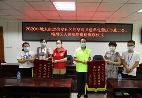 活动中,城东街道信安社区为感谢结对共建单位在疫情防控中做出的贡献,向市总工会和我院赠送锦旗。