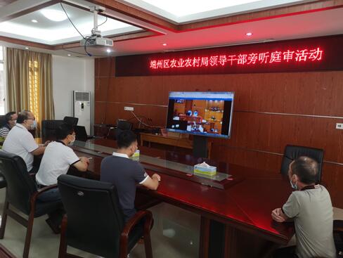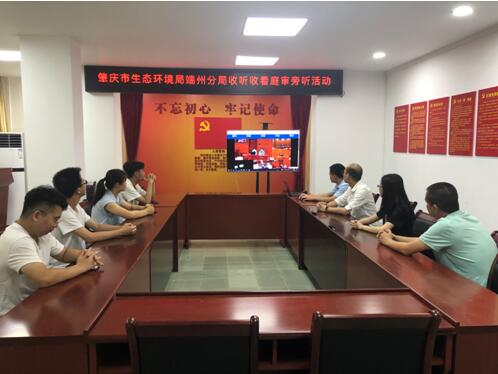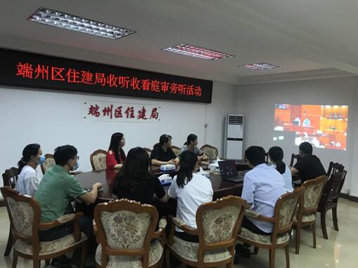 6月22日下午,端州法院联合区普法办通过庭审直播网开展全区干部职工旁听庭审活动,集中观看了端州法院审理一宗非法持有毒品犯罪案件的庭审直播。以被告人伍某周涉嫌非法持有毒品罪、容留他人吸毒罪一案,开展“以案释法”,变法官为讲师,变法庭为课堂。